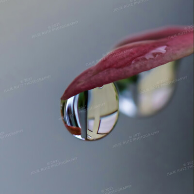 Tristine, meine erste Makro-Fotografie, entstand an einem traurigen Morgen. Der Himmel war so düster wie meine Gedanken. Ich sass am Esstisch und mochte nach dem zweiten Kaffee nur wieder zurück ins Bett, die Decke über den Kopf ziehen. Mein leerer Blick starrte wie ferngesteuert aus dem Küchenfenster. Auf einmal befand ich mich in einer anderen Welt. Tiefschwarz und wunderschön, sah ich meine ganze Verzweiflung in einem einzigen kleinen Regentropfen. Auf einmal war ich wieder bei mir. Auf einmal fühlte ich mich verstanden. Auf einmal war ich in meiner Trauer nicht mehr allein. Fasziniert und wie magnetisch angezogen öffnete ich die Türe zum Garten und trat hinaus, um dieses Geschenk der Natur für immer festzuhalten.